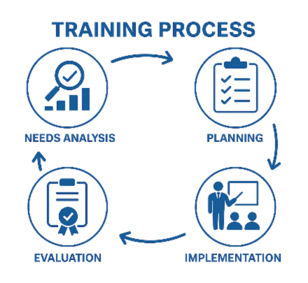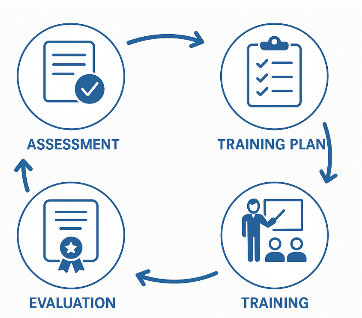 Trainomate’s corporate training model is built on a strategic four-phase cycle: Needs Analysis,